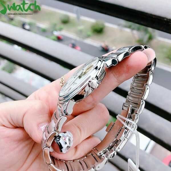 Các bạn nữ tay nhỏ nên chọn đồng hồ mặt ovan hoặc mặt chữ nhật. Với hai hình dáng này khi kết hợp với cổ tay nhỏ sẽ bổ sung cho nhau, tạo hiệu ứng hài hòa, thanh lịch, thuận mắt người nhìn và nâng cao giá trị thẩm mỹ của chiếc đồng hồ.