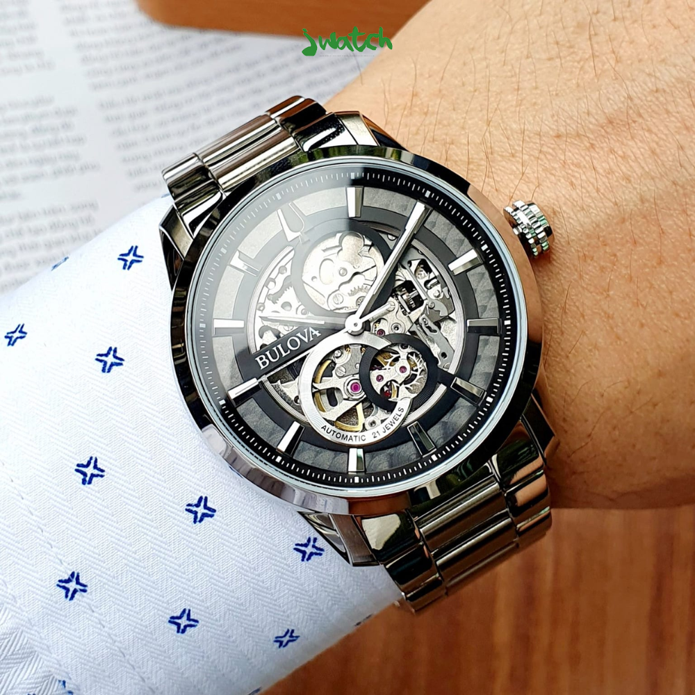 Bulova 96A208 - Ẩn bên dưới mặt kính mẫu đồng hồ Bulova 96A208 mang đến cho phái nam 1 vẻ ngoài độc đáo cùng mặt số chân kính trong suốt phô diễn ra 1 phần bên trong của bộ máy cơ chứa đựng cả một trải nghiệm thú vị.