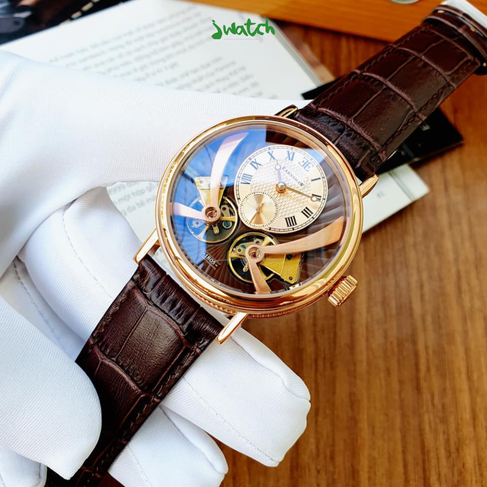 Thomas Earnshaw ES-8059-03 - Cảm nhận sự tinh tế sang trọng và bắt mắt, ngắm nhìn từng chuyển động nhịp nhàng của cỗ máy cơ khí vượt thời gian trên chính đôi tay của bạn. Cùng với màu nâu cà phê huyền ảo thì hai góc lộ cơ như thiết kế Tourbilon của những thương hiệu luxury chính là những chi tiết đắt giá tạo nên sự ấn tượng cho mẫu đồng hồ này.