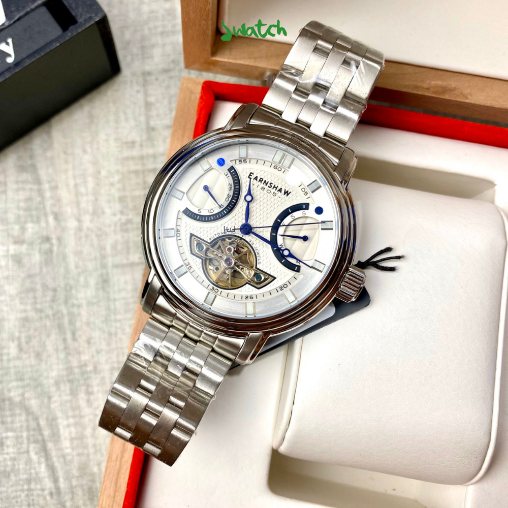 Thomas Earnshaw ES-8184-33 - Gã bạch công tử to lớn chỉ dành cho anh em có cổ tay từ 17cm trở lên. Máy cơ đẳng cấp 33 chân kính siêu đẹp mà giá lại hợp lý nữa chứ ! Máy Automatic 33 chân kính, trữ cót 38h. Điểm nổi bật nhất chính là chức năng Retrograde độc đáo ở 2 bộ lịch ngày và lịch thứ.