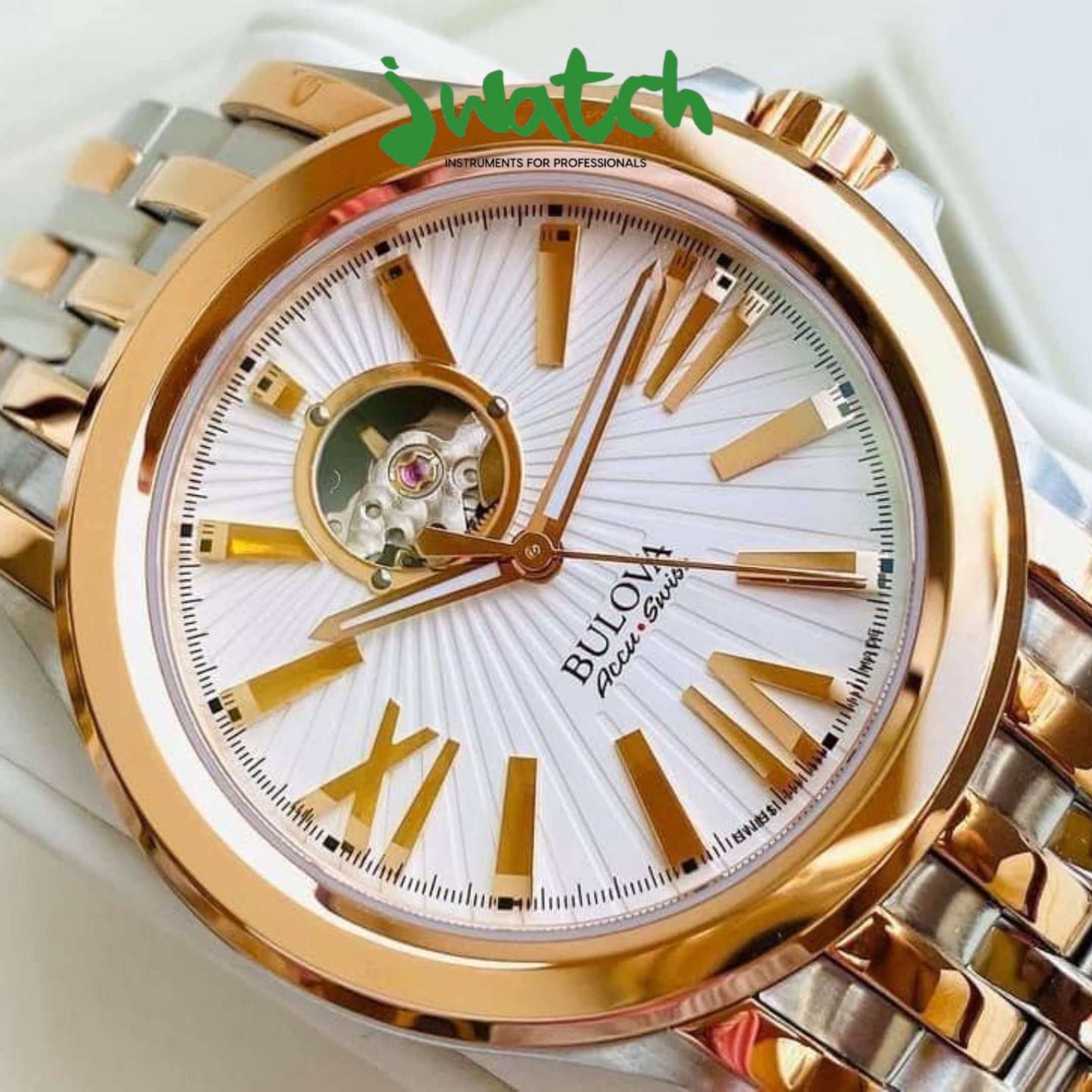 Mẫu cuối cùng cũng là mẫu đỉnh cao nhất trong Top 7 đồng hồ nam Bulova năm 2021 là Bulova 65A105 với bộ máy Thuỵ Sỹ chuẩn Swissmade được mang tên Accu Swiss. Mặt dial được thiết kế độc đáo là những tia lớn trải đều nhưng không phải từ tâm mà là từ phần lộ cơ ở góc 12 giờ. Đường kính chỉ 40mm rất phù hợp với cổ tay anh em cùng với dây demi vàng hồng vô cùng sang trọng cho anh em đi dự tiệc. Mức giá cho một siêu phẩm nhưng cũng khá phù hợp cho một chiếc đồng hồ Thuỵ Sỹ chỉ hơn 16 triệu.
