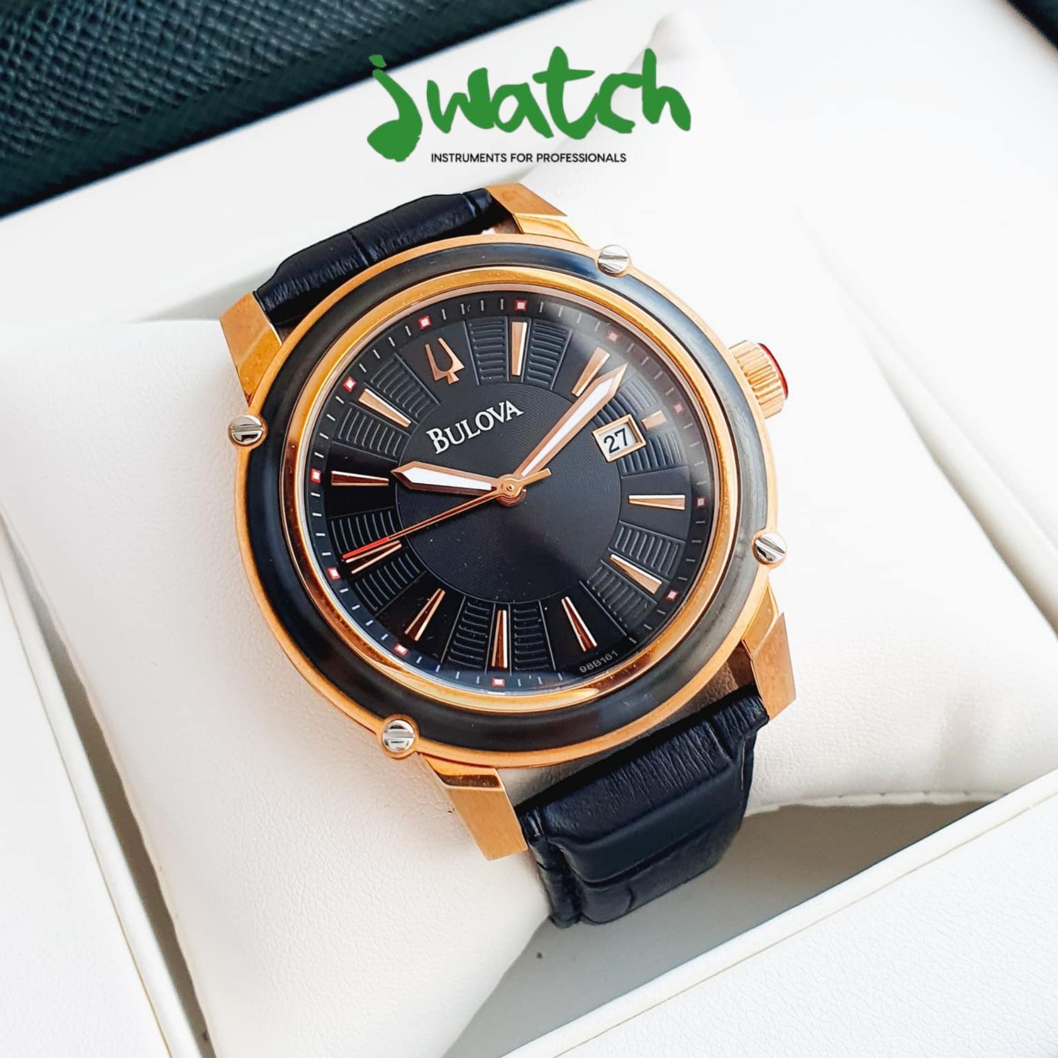 Thêm một mẫu dây da kích thước 42mm nữa nhưng với phong cách hoàn toàn khác mang những nét "độc lạ" từ Bulova 98B161. Mang tông màu đen củ đạo nam tính, lịch lãm với dây da đen cùng mặt dial 'ton sur ton' nhưng điểm nhấn lại nằm ở những cọc số mạ vàng hồng được xen kẽ nằm lọt trong "những chiếc thang" cùng đó là bộ 3 kim mạ vàng hồng được phủ dạ quang. Với mức giá gần 7 triệu thì anh em cũng nên cân nhắc cho một siêu phẩm thời trang đến từ thương hiệu của người Mỹ này.